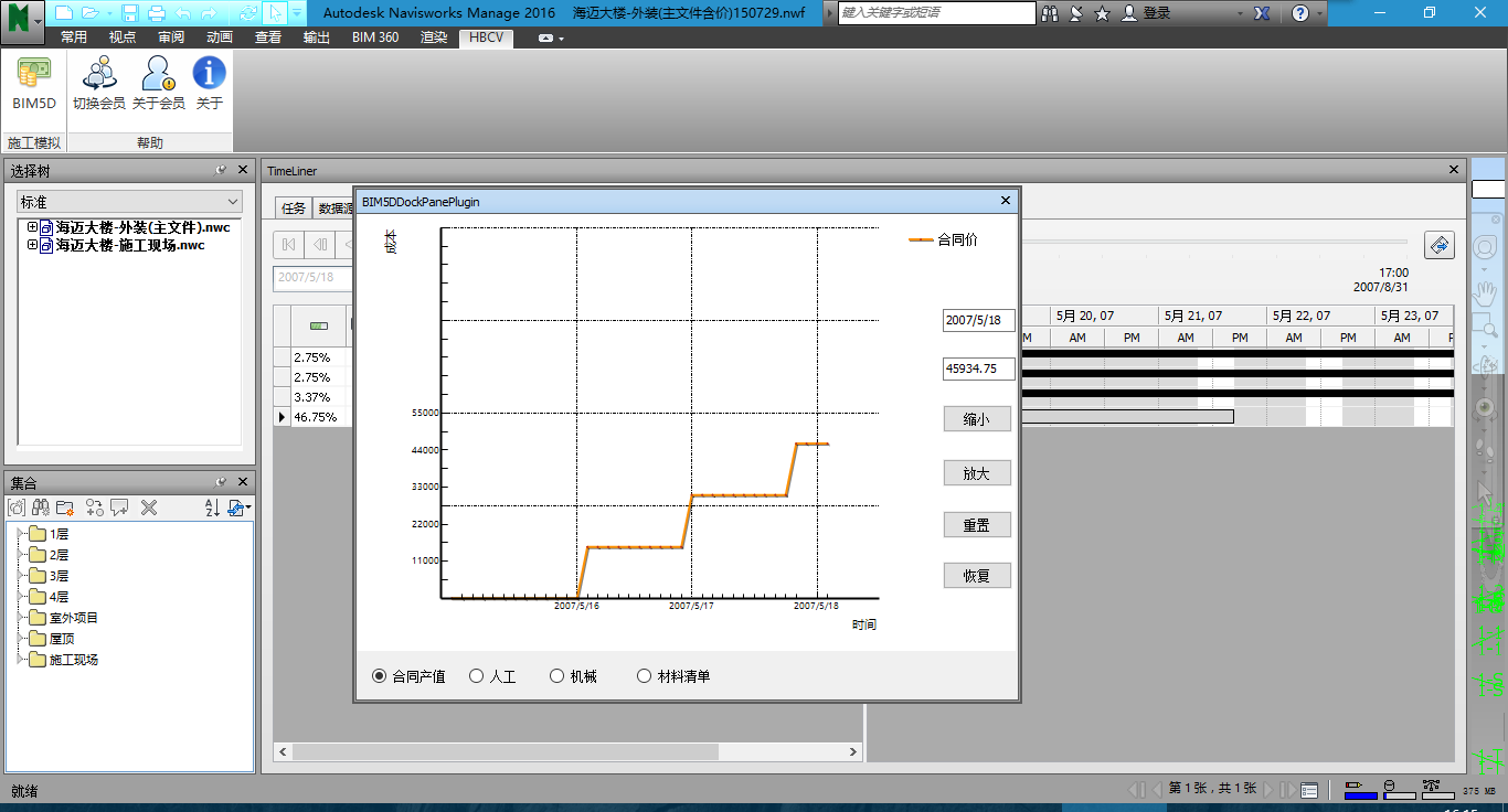 HBCV是一款插件化的工具应用,集成在naviswork环境中,通过对施工过程的模拟,对工程进度和工程成本进行分析,可提前了解工程的施工情况。
